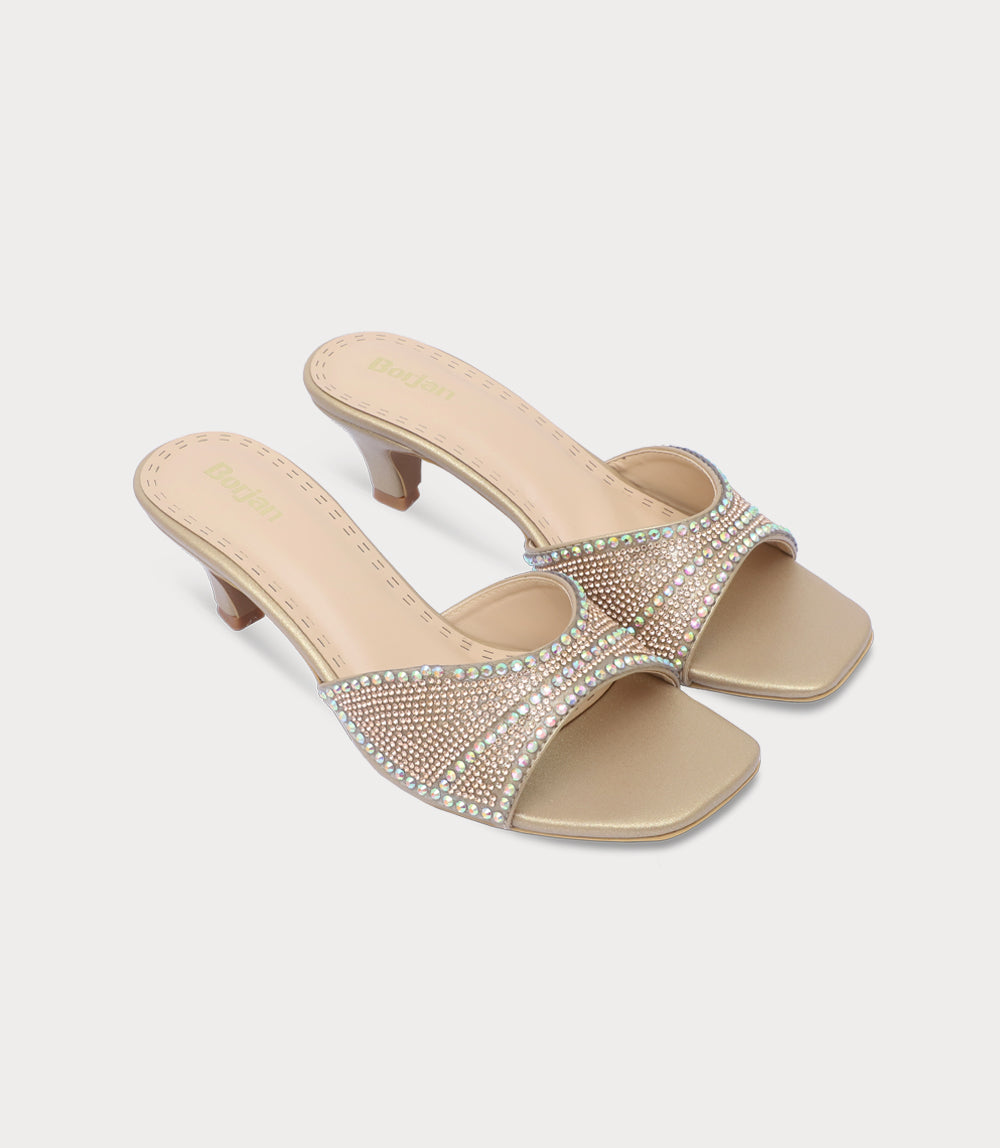 Women Slipper Heels-GOLDEN