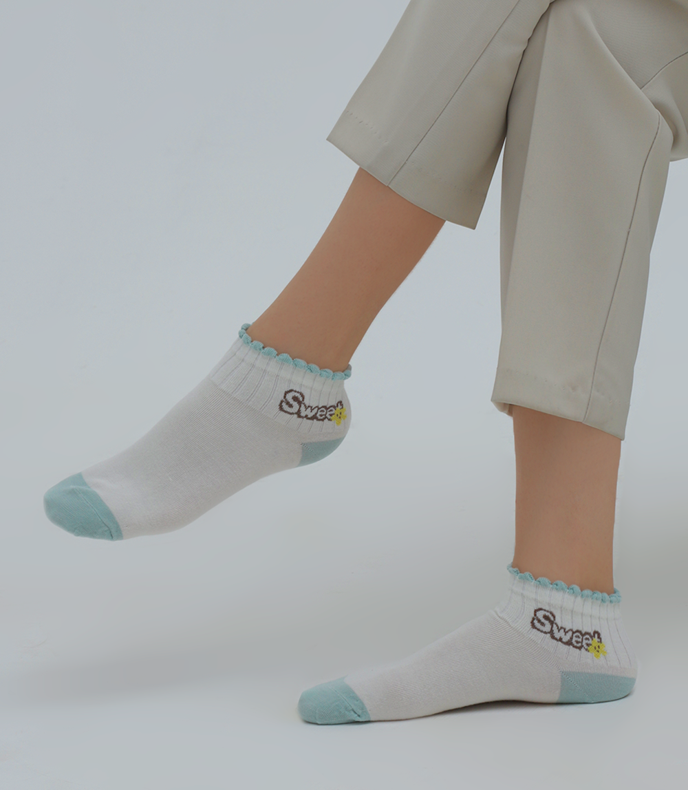 Women Socks-WHITE/GREEN